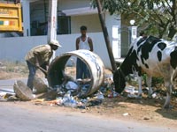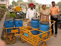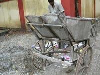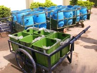 Every human activity generates some discards which need to be utilized or disposed of hygienically. Mixed discards are really Waste, and unusable. Unmixed discards can almost all be put to use. Discards from a home or household are traditionally put just outside the premises nearby. If this is at a neighbour’s doorstep or on a public street, it is unacceptable. So COLLECTION is necessary, preferably at the Doorstep, in PRIMARY COLLECTION VEHICLES for onward transport. If these are designed to collect and transport different wastes unmixed, further PROCESSING for other uses becomes possible, leaving little ultimate waste for DISPOSAL. |